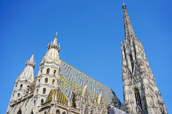 史蒂芬大教堂,亦称圣斯德望主教座堂,位于维也纳老城区的心脏地带,是维也纳城市的标志,也是奥地利最重要的哥特式建筑。是全世界最著名的哥特式教堂之一。每一个走进教堂的人,都会为其建筑的浩繁和精美所折服。两排哥特式的柱子,把教堂的正殿隔成三部分。放眼望去,从圣坛背後唯一的两块免遭摧残的玻璃窗画射进了一缕缕五彩缤纷的光线,为巴洛克的圣坛增添了一丝神秘的气氛。游客也可爬上大教堂的南塔,坐电梯上去看普莫林大钟。