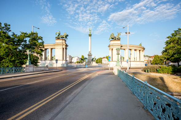英雄广场(Heroes'Square)是匈牙利首都布达佩斯的中心广场,是一个融合了历史、艺术和政治的胜迹。广场是1896 年为纪念匈牙利民族在欧洲定居1000 年而兴建,1929 年完工。整个建筑群壮丽宏伟,象征着几经战争浩劫的匈牙利人民,对历史英雄的怀念和对美好前途的向往。具有历史纪念意义的英雄广场,现在已成为国内外游人参观游览的胜地。每当重大节日或外国元首来访时,都要在英雄广场举行盛大的仪式。