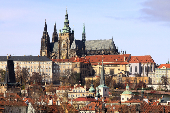 布拉格城堡曾经是捷克王室所在地,现在则是总统与国家机关所在地,这里也是眺望老城区绝好的观景台。这里保存着波希米亚王国的王冠。布拉格城堡是世界上最大的古城堡,长570米,平均宽约130米。城堡里最主要的三个景点分别是圣维特大教堂、黄金巷和旧皇宫。城堡中著名的圣维特大教堂,是整座城市最古老的部分,至今已有1000多年历史。圣维特大教堂是一座宏伟的灰黑色哥特式建筑,参观重点包括20世纪的彩色玻璃窗、圣约翰之墓和圣温塞斯拉斯礼拜堂。中期教堂的大型彩色玻璃是布拉格著名画家穆哈的作品。旧皇宫每天中午12点时会举行士兵换岗仪式,很有特色。