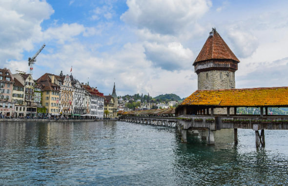 瑞士琉森最负盛名便是卡佩尔廊桥Chapel Bridge(Kapellbrücke)又叫教堂桥,这是卢塞恩的标志,始建于1333年,也是欧洲最古老的有顶木桥,桥的横眉上绘有120幅宗教历史油画,沿途还可欣赏描述当年黑死病流行景象的画作。