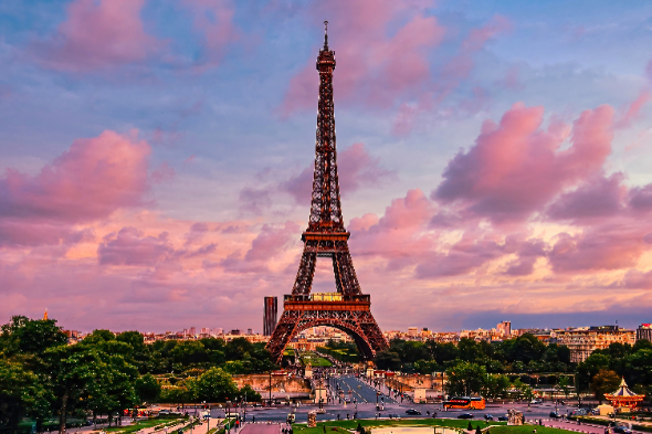 为了 1889 年世界博览会以及庆祝法国大革命一百周年,著名建筑工程师古斯塔夫.埃菲尔设计这座铁塔,在一创纪录的时间内建造完工后,这个以其命名的铁塔成为全球最著名的地标之一,也成为了巴黎,法国与浪漫的国际象征。全塔高320米,塔楼分三层,一、二楼有餐厅、咖啡座等,三楼是眺望台,在天晴的日子,可从此远眺70千米以外的巴黎近郊地区。