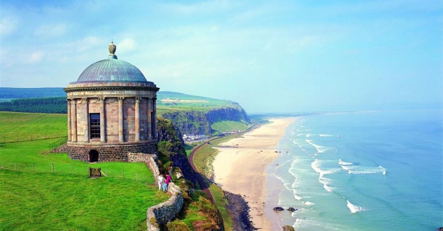 《权力的游戏》龙石岛的取景地是北爱的 下坡海滩 (Downhill Beach)。Downhill 是 北爱尔兰 伦敦 德里郡的一个小村子,附近的 下坡海滩绵延着11公里的沙滩,是个冲浪胜地。标志性的建筑就是穆森登神庙(Mussenden Temple)。这座神庙虽然不大,但是位于120英尺(36.6米)高的悬崖之边,静静的注视着大西洋,让人不由心生惊叹。而这里荒凉空旷的美,让人心境开阔。
