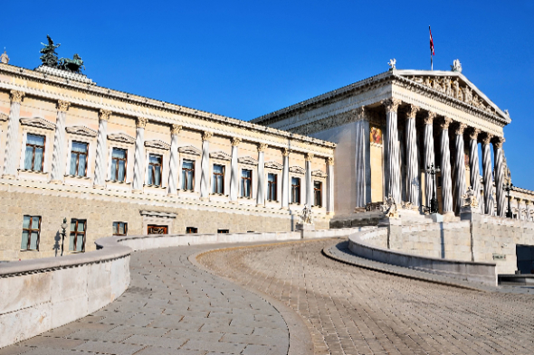 维也纳国会大厦整栋建筑仿希腊式,素有“欧洲最美的国会大厦”的美称。如今这里是奥地利国民议会与奥地利联邦议会所在地。