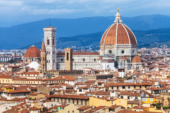 早上起程游览佛罗伦斯,从山丘上的米高安哲奴广场,俯览佛罗伦斯全貌,欣赏这个充满文艺气息的美丽城市; 游览市内名胜:建于十三世纪,全球第三大教堂的圣母无原罪之花教堂及安奴河上中世纪黄金交易处之拱桥、安葬意大利名人米高安哲奴、达文西及著名物理学家伽俐略的圣十字教堂。闻名世界的意大利皮革业及制皮技术源出于此,团友可藉此机会到皮革公司选购实用的皮革制成品。下午前往比萨,游览举世闻名的比萨斜塔,参观建于九百年前用白色云石建造的比萨大教堂及洗礼堂,斜塔原是比萨大教堂所属的钟楼,不料地基不稳,又几百年斜立不倒,成为一个饶有趣的名胜,游罢驱车前往港口城市热那亚邻近城市的当晚酒店住宿,不经过或游览停留于热那亚。