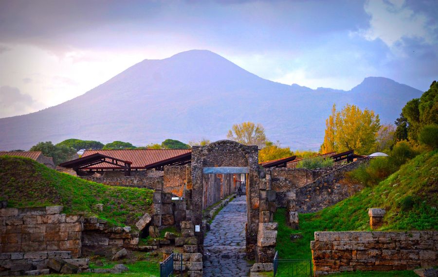 10:00 游览千年【古城庞贝★(含中文讲解)】。公元 79 年,维苏威火山喷发的一瞬间被火山灰埋在地下,却因此保留了大量古罗马帝国的建筑遗迹和艺术文物,成为世界上最为著名的古城遗址,直到 18 世纪中期,这座深埋在地底长达两千多年的古城才被挖掘出土而重见天日。