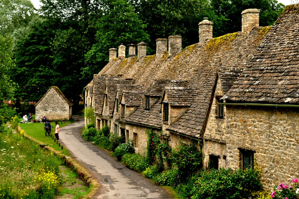 Bibury是纯天然原生态傍水而居的小镇,视线所及之处皆是一片绿荫掩盖。Bibury的房子低矮而古朴,蜂蜜色的墙石上爬满藤蔓,绿色的藤蔓流水般地挂在石壁上。这些房屋像雕塑一样立在这里,几百年都没有变过,真的是油画里走出的唯美小镇!这里的阿灵顿排屋,俨然已经成为整个英国的名片。